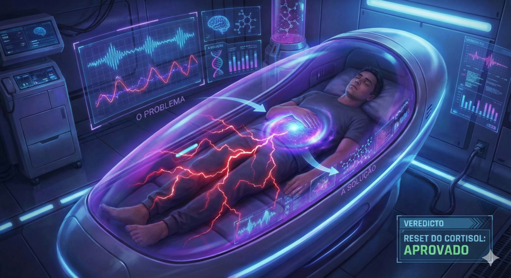 Science calls it the Cortisol Trap. When you are stressed (work, bills, anxiety), your body floods with cortisol. This ‘survival hormone’ literally commands your cells to store fat in your belly for protection.